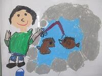 早速,自己紹介や自分の似顔絵を描いて勉強をしていました。