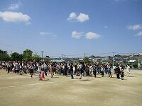1年生と2年生は校庭で一緒に遊んでいます。