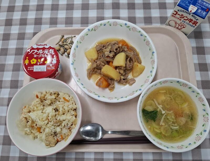 一覧へ ひなまつり献立 日時 2026年03月03日(火) 公開対象 給食室カレンダー 詳細 牛乳 五目寿司 肉じゃが かぶのすり流し汁 ヨーグルト 大豆小魚 作成者 増尾西小学校管理者 更新日時 2026-03-04 11:27:43