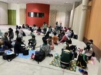 防災倉庫内に収納してある避難所開設グッズを、実際に見たり触れたりしました。