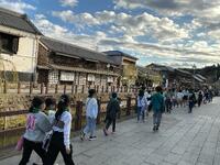 街並みの散策では、樋橋から水がジャージャー流れ落ちる様子を見ることができました。