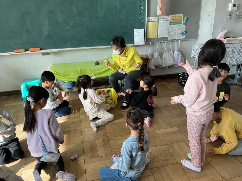 16日(火)、1年生は生活科の昔遊び体験を行いました。