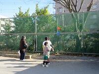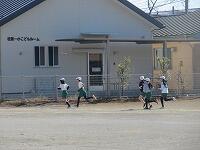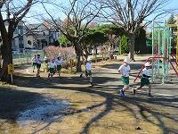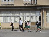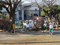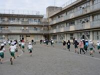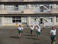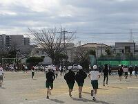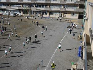 校庭を走り抜きます。