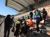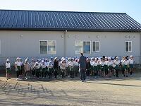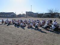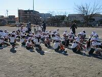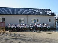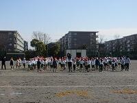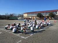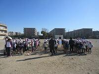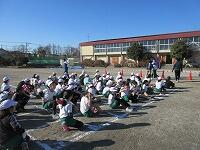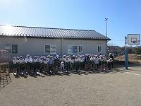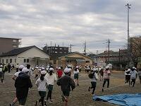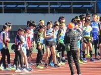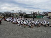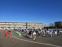 「準備運動」をして、体をほぐしています。走る順番は、(5年女子)→(5年男子)→(6年女子)→(6年男子)です。
