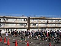 一斉にスタートしました。校舎の裏側コースを2周した後、中トラック、小トラックの順に走ります。