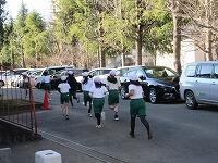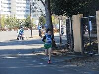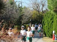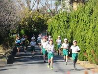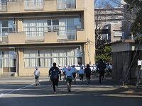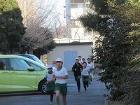 もう1周、校舎裏を回ります。体育館横を通過します。ここからがきついところですが、頑張って走っています。