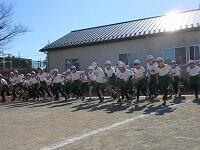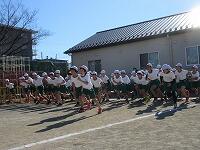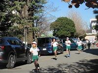 ピストルの合図でスタートしました。校舎の裏側コースを走って、校庭に戻って来ました。