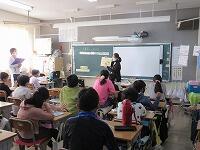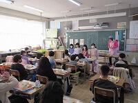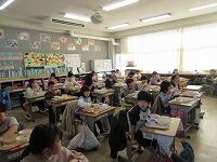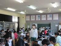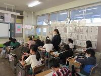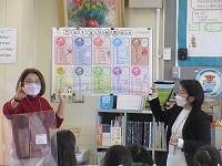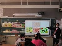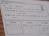 最後に、今日学習したことを振り返って、これから頑張りたいことをワークシートに書きました。子どもたちからは、「野菜にそんなパワーがあることを知らなかった。」「好き嫌いをしないで、野菜をもっと食べます。」など、発表しました。そして、「給食には、毎日たくさんの野菜が使われている」ことに気がつきました。栄養士の加藤先生、今日は、ありがとうございました。