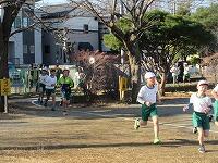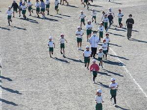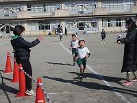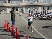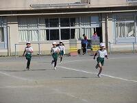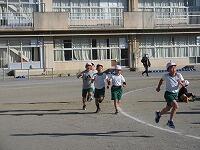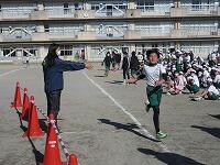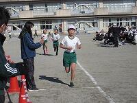 次々と校庭に戻ってきて、トラックを走っています。もうすぐゴールです。