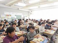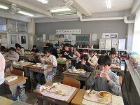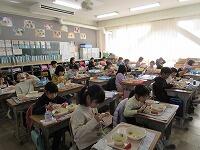 5年生は、家庭科で学習した「栄養素」のことを思い出して食べていました。