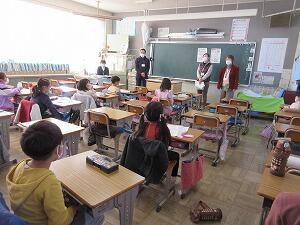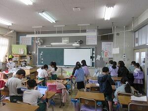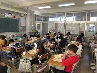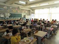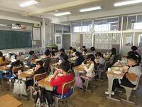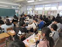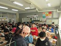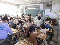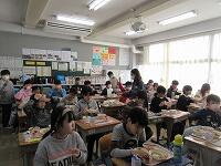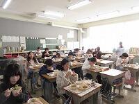 「今学期最後の給食の様子」です。残さずに食べられたでしょうか? 今回は、2年生と5年生の教室に行ってみました。