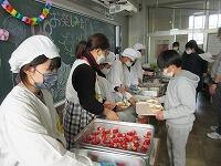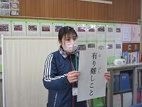 」が返ってきました。笑顔でニコニコです。この日だけではありません。朝早くから調理員さんが、準備してくださいました。いつもおいしい給食をありがとうございます。3学期の給食も楽しみです。