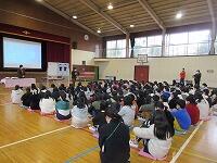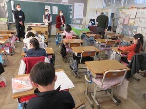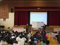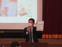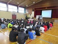 次に「春休みの生活」について、生徒指導主任の川原先生は、「春休みの生活のルールを守りましょう」と子どもたちに話しました。