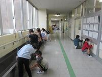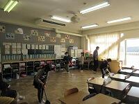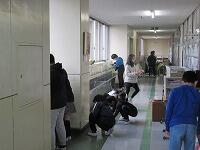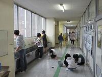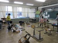 机と椅子を廊下に出して、教室の床を拭いているクラスもあります。