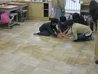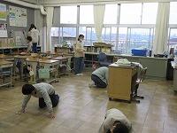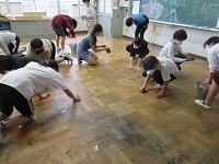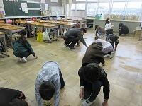 教室の床を入念に磨いています。感謝の気持ちを込めてきれいにします。