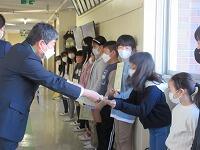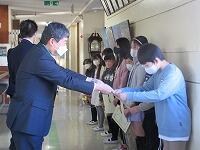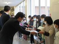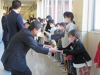 卒業生の皆さん、御卒業おめでとうございます。中学校へ行っても目標を持って、元気に活躍してください。応援しています。