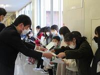 1・2校時は、学級活動の時間で、クラスごとに担任が、子どもたち一人一人に「通知票」を渡しました。この1年間を振り返ると、できるようになったことがたくさん増えました。