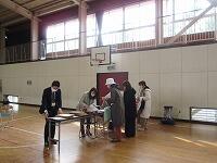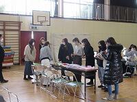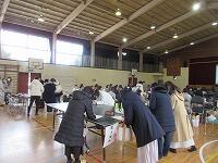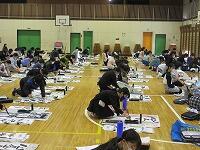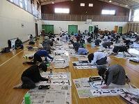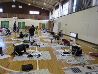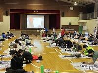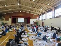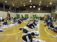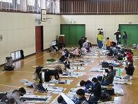 体育館と武道場に分かれて、「パーテーションの組み立て」を行いました。ワンタッチ式のものです。「簡易ベッド」も組み立てました。今回の訓練は、松葉中学校が会場でしたが、本校や松二小でも同様な「避難所開設訓練」の実施が必要となります。