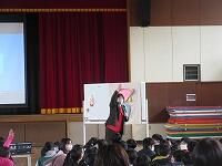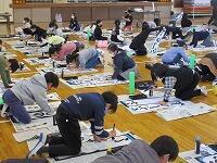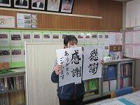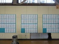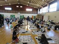 『修了式』を始める前に、頑張った友達の紹介を行いました。今回は、「千葉県書き初め展覧会」です。おめでとうございます。