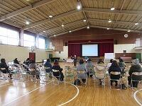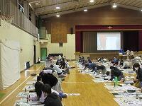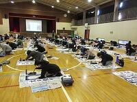 昨日、松葉中学校にて『松葉町避難訓練』が行われました。今回は、「災害時の避難所開設訓練」です。前半は、「AEDの操作による心肺蘇生法」の研修を、後半は、「簡易トイレの組み立て確認」と「パーテーションの組立」を行いました。