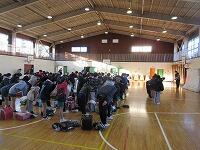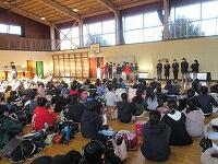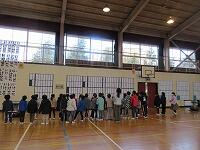 最後は、「校歌斉唱」です。6年生がいない体育館の後方は、なんとなく寂しげな様子でしたが、みんな元気よく校歌を歌いました。
