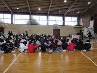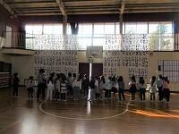 今日は、放課後、体育館で吹奏楽部の『お別れレク大会』を行いました。吹奏楽部員がみんな集まって、6年生との思い出に『お別れレク』を楽しみました。レクは、全部で3つ行いました。