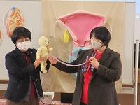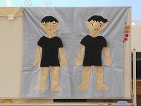 この写真は、何か、わかりますか?」「これは、野菜を食べている人と食べていない人の腸の様子です。」「きれいな腸にするには、どうすればいいですか?」と加藤先生が、子どもたちに問いかけました。「野菜が不足していると、・・・。」