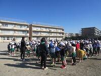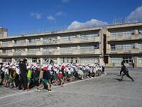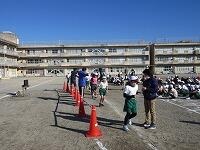 中学年に続いて、低学年の番です。1年生にとっては、小学校「初めての持久走記録会」です。1・2年生は、約800m(835m)を走ります。