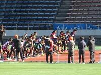 もう少しで、校庭のトラックです。次々と校庭に戻ってきました。