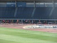 スタート位置まで移動します。体をほぐします。ピストルの合図に合わせてスタートしました。