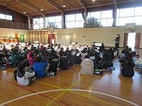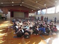 3校時は、『表彰』と『令和4年度の修了式』を行いました。今回は、3年ぶりに体育館で行いました。全校児童が体育館に集まるのは、しばらくぶりです。子どもたちは、慣れていなかったのか、きょろきょろとしていました。