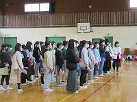 今日は、『卒業式予行練習』を行いました。卒業までいよいよ「あと3日」。17日の本番と同じように、進めていく練習です。本番でしっかりとできるように、一つ一つ細かい所まで、チェックしました。昨年度は、会場を体育館と校庭に分けた2部構成でしたが、今年度は、従来通り体育館で式の全てを実施します。