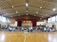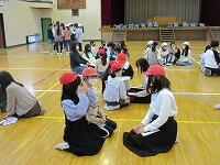 今日は、放課後、体育館で吹奏楽部の『お別れレク大会』を行いました。吹奏楽部員がみんな集まって、6年生との思い出に『お別れレク』を楽しみました。レクは、全部で3つ行いました。