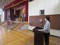 次に「春休みの生活」について、生徒指導主任の川原先生は、「春休みの生活のルールを守りましょう」と子どもたちに話しました。