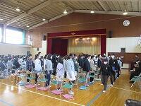 最後は、「校歌斉唱」です。6年生がいない体育館の後方は、なんとなく寂しげな様子でしたが、みんな元気よく校歌を歌いました。