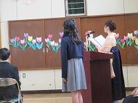 卒業生の皆さん、御卒業おめでとうございます。中学校へ行っても目標を持って、元気に活躍してください。応援しています。