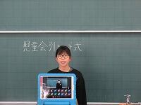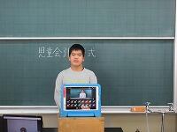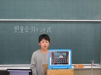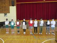 『修了式』を始める前に、頑張った友達の紹介を行いました。今回は、「千葉県書き初め展覧会」です。おめでとうございます。