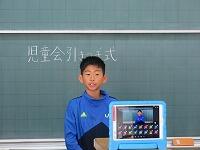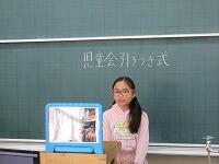 確かに松一小児童会の「かぎ」を受け取りました。続いて、新児童会役員の紹介と抱負の発表です。