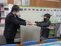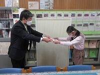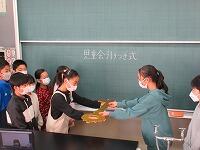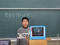 先週、リモートによる『児童会役員引き継ぎ式』がありました。今年度の児童会役員(旧児童会役員)と来年度、児童会役員(新児童会役員)になる人との引き継ぎです。