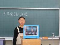 「校長式辞」と「記念品贈呈」です。在校生を代表して、5年生から「送る言葉」の動画の上映です。
