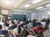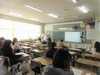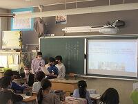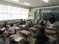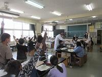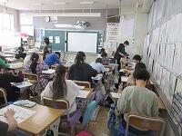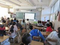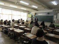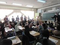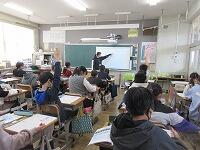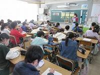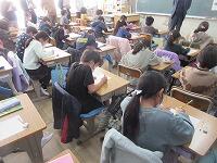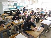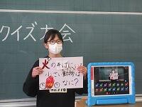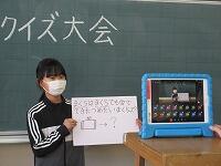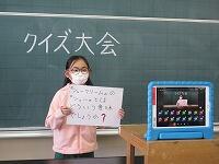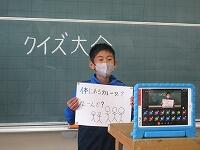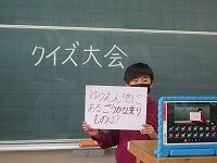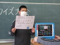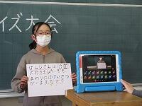教室でクイズに挑戦している様子です。答えが3択の問題もありました。