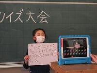 今日は、ロング昼休みにリモートで、今年度最後の児童会主催の全校イベント『松一クイズ大会』を行いました。今回は、「クイズ大会」ということで、12月に全校児童から募ったクイズを児童会が厳選し、クイズをどんどん出題していきます。問題は、全部で28問です。対抗戦等ではないので、単純にクイズを楽しみます。