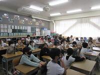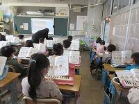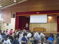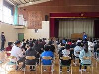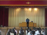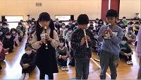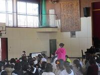 第1部:ロング昼休みに開催した6年児童対象のコンサートの様子です。