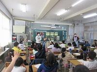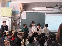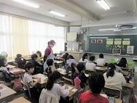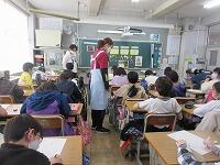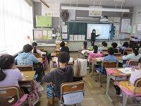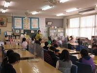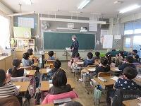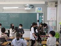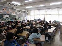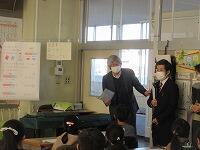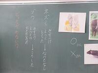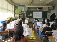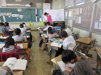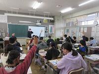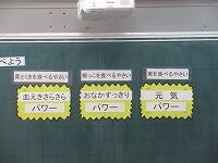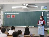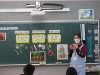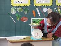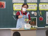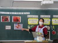 最後に、今日学習したことを振り返って、これから頑張りたいことをワークシートに書きました。子どもたちからは、「野菜にそんなパワーがあることを知らなかった。」「好き嫌いをしないで、野菜をもっと食べます。」など、発表しました。そして、「給食には、毎日たくさんの野菜が使われている」ことに気がつきました。栄養士の加藤先生、今日は、ありがとうございました。