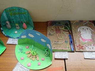 第一校舎の職員室前の廊下に、「柏っ子造形展」に出品した作品を展示&掲示しています。どれも子どもたちの力作ばかりです。