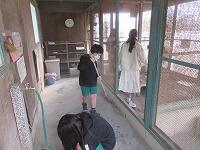 「飼育委員会」は、ウサギの世話と飼育小屋の名前表示を掲示していました。名前は、「まついちラビットハウス」です。