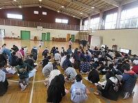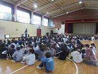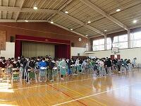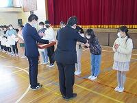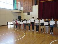 3校時は、『表彰』と『令和4年度の修了式』を行いました。今回は、3年ぶりに体育館で行いました。全校児童が体育館に集まるのは、しばらくぶりです。子どもたちは、慣れていなかったのか、きょろきょろとしていました。