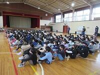 写真は1年生ですが、真剣に話を聞き、訓練に取り組みました。何はともあれ、起こらないことが一番です。