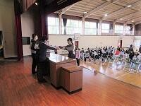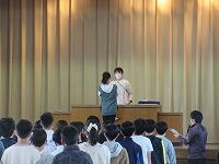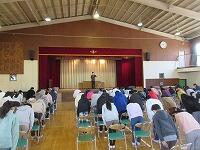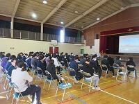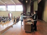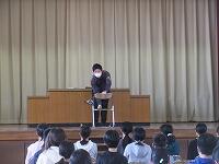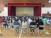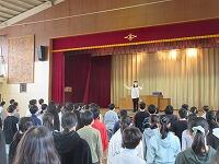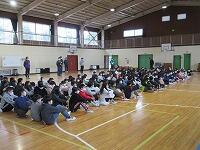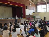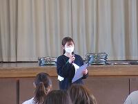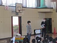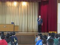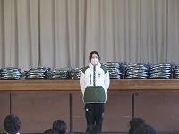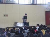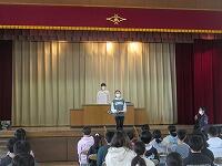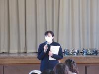 次に「春休みの生活」について、生徒指導主任の川原先生は、「春休みの生活のルールを守りましょう」と子どもたちに話しました。