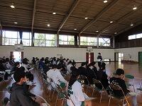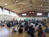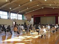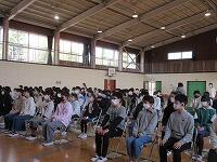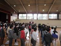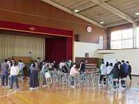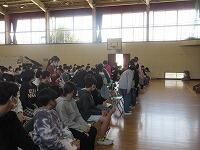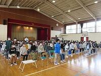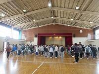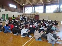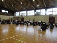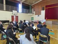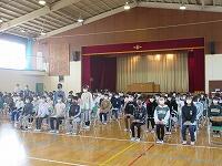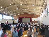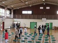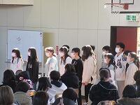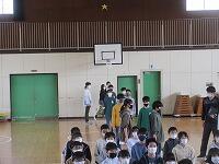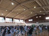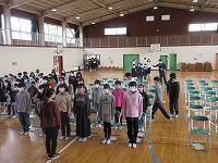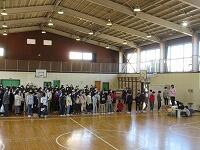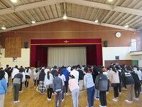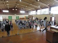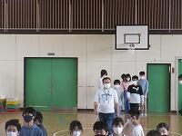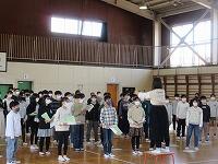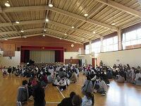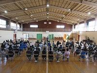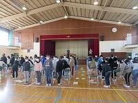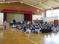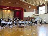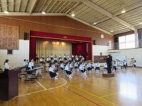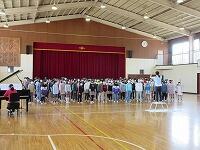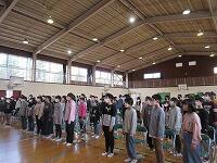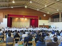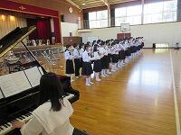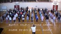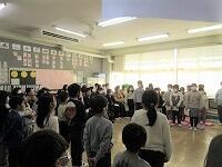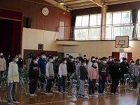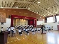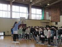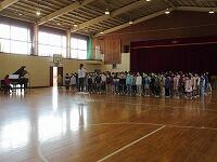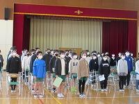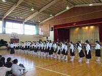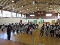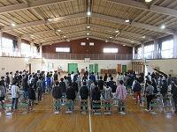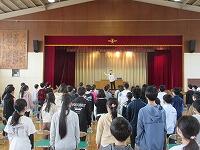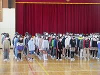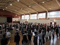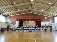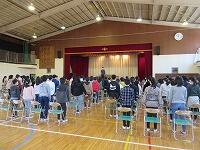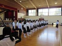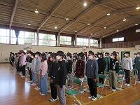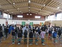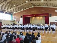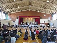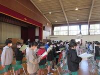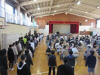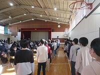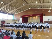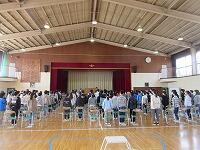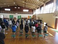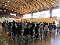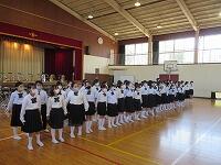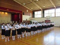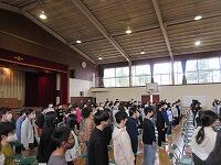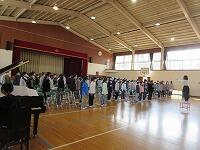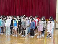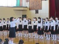 最後は、「校歌斉唱」です。6年生がいない体育館の後方は、なんとなく寂しげな様子でしたが、みんな元気よく校歌を歌いました。